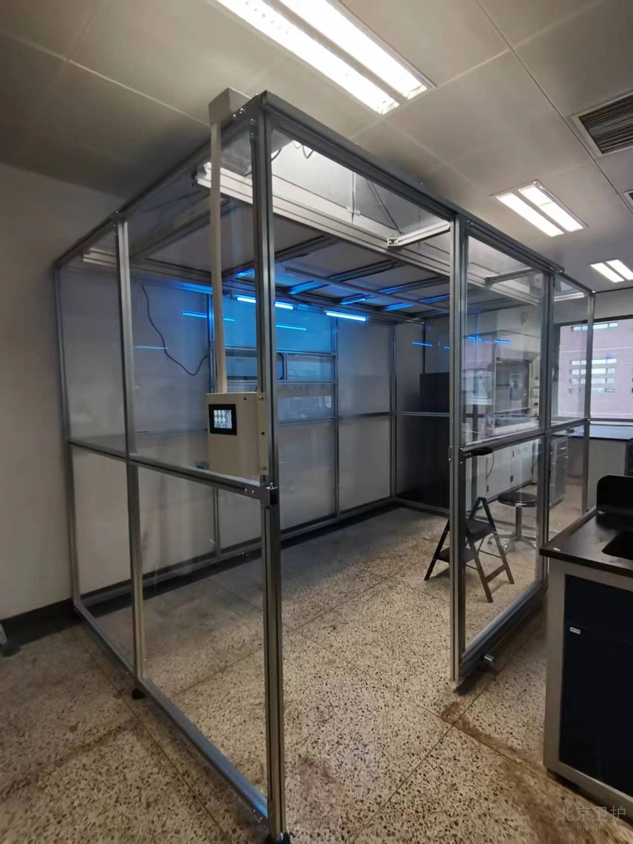 9月份我公司接到此項(xiàng)目后便抓緊時(shí)間出具相關(guān)方案、設(shè)計(jì)圖紙,經(jīng)過(guò)不斷的溝通和改動(dòng),最終確定施工方案。此單位潔凈棚設(shè)計(jì)面積20平米,主體材質(zhì)為鋁型材,隔離板使用亞格力板,頂部配有紫外線燈輔助殺菌,過(guò)濾系統(tǒng)為百級(jí)凈化模塊,并配有我公司研發(fā)的控制系統(tǒng)。從最初的方案設(shè)計(jì)、安裝施工,到最后的驗(yàn)收,總工期為10個(gè)工作日。