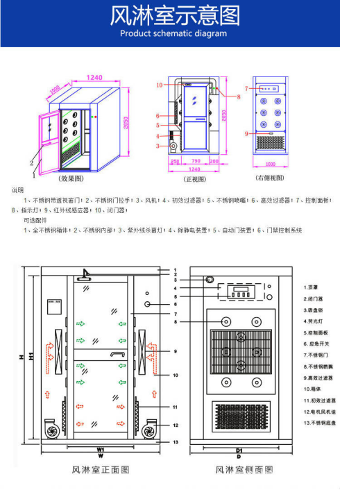 二、電機功耗小,此風淋室設(shè)計是進入風淋室吹淋,出門不吹淋,紅外線自動感應(yīng)開關(guān)控制吹淋,避免風淋室無人空吹,多重節(jié)能。